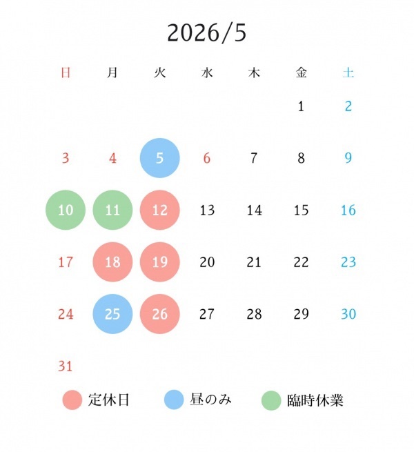 【定休日】毎週火曜日、第3月曜日、第5月曜日